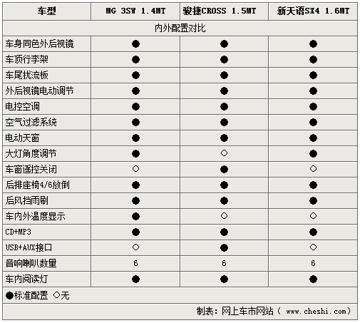 为了令驾乘者得到更多的便利,三车均在内外设计了多项丰富便利的配置,在车辆外部的设计方面三车均有自己的特点,在保证了高性能的前提下,多项豪华配置均出现在三款跨界车型之上,内部的多项设计对乘员的舒适及娱乐需要两者也都考虑的相当周全,带MP3的CD播放器以及自动空调等一应俱全。