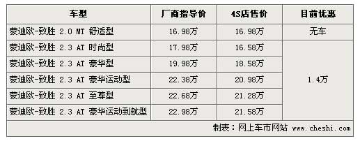 据4S店销售人员介绍:目前蒙迪欧致胜全系优惠1.4万元,但现车较少,几乎所有车型都需要预订,优惠幅度较之前有所回落。2.0车型目前不接受预订,厂家不给予排产。主打车型为2.3升时尚型、豪华型、豪华运动型三款车型,预定车辆需等待1个月左右,2.3至尊型、豪华运动导航版预定需等一个半月时间。