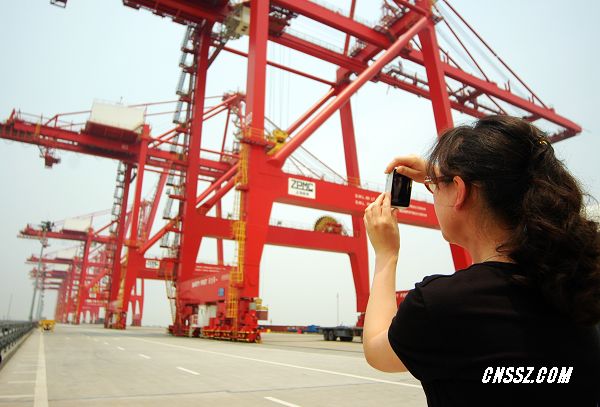 图为:港口码头壮景让记者纷纷拿出相机留下这一珍贵的时刻。 摄影:姜振华