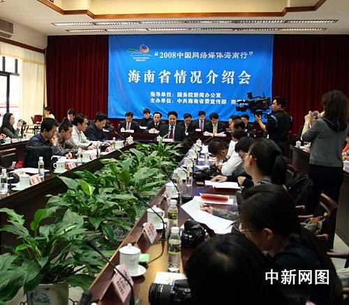 “2008中国网络媒体海南行” 记者参加海南省情况介绍会。中新社记者 关向东 摄