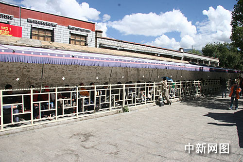 因布达拉宫每天只发2300张票,其中仅仅700张发售给散客,故宫门口等候一张门票的旅客排成了长队。