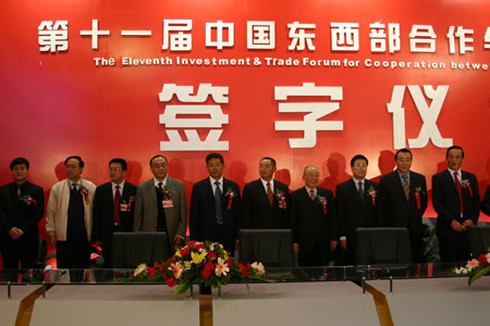 4月6日下午,第十一届中国东西部合作与投资贸易洽谈会首场集中签约仪式在曲江国际会展中心A馆举行。据了解,本场签约仪式共签约投资合作项目37个,总投资共计人民币106.7亿元。