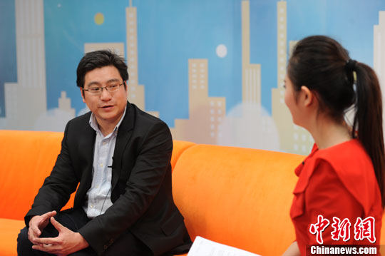 陈黎明(左)。 中新网记者 张龙云 摄。