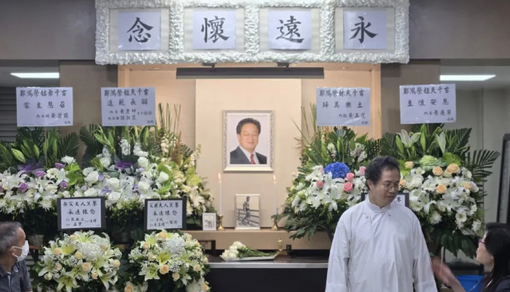 此次灵堂布置简洁,正中悬挂“永远怀念”四字,除了他身着黑色西装、系着红色领带的遗照,还特意摆放了他年轻时展露健美身材的照片,以此纪念他曾作为健美先生的过往。