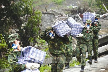 “咚咚咚——”昨日上午9时许,“沉寂”了1个多月的北川老县城内,又出现了热闹场面:一面面红旗飘扬在县委大楼废墟上;一队队解放军战士迅速集结;一台大型挖掘机轰鸣着,巨大的挖臂舒展开来,撼动着一大块呈45度角倾斜的倒塌楼面……