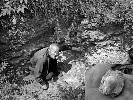 樊永庆老汉指认化石发掘层