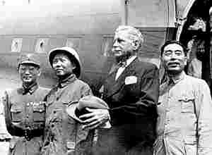 1945年8月28日,毛泽东赴重庆谈判。临行前,他换了换装,穿上了叶剑英特地给他买的皮鞋和在北京给他订做的一套蓝灰色中山装。江青到苏联医生阿拉夫那里为毛泽东借来了一顶礼帽。周恩来上上下下打量毛泽东这身装束,毛泽东说:“怎么,嫌我穿得太洋气?”周恩来说:“不,我是看主席戴的帽子好像有点小。”说着,摘下自己头顶上的盔式太阳帽递给毛泽东:“主席,你戴上这顶试试,重庆的日光是很强烈的。”毛泽东接过太阳帽戴上,不大不小正合适。周围的同志也说好。毛泽东风趣地说:“恩来,我可夺人所好啰!”并问周恩来:“你戴什么呢?”周恩来说:“我还有,再说,重庆我比你熟,总可以搞到一顶,这顶就送给你吧。”于是,毛泽东就戴上这顶盔式太阳帽登上飞机,去了重庆,并在重庆机场留下了一张头戴盔式礼帽的历史照片。
