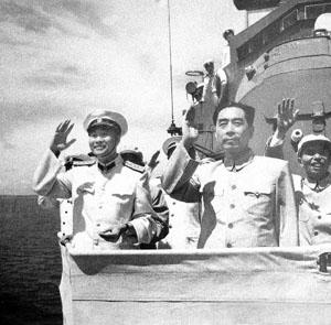 周总理身穿中山装登上检阅舰