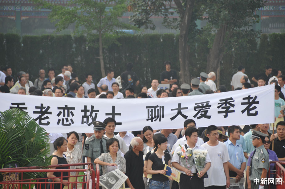 中新网7月19日电(张中江) 19日上午,北京大学资深教授季羡林先生的遗体告别仪式在八宝山举行,数千民众赴现场送别季老。