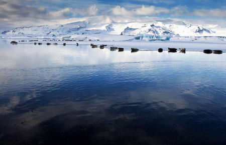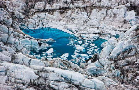 全球变暖正在影响着冰岛的冰川:冰岛南海岸的冰川一点一点地融化着,正在逐渐消失。冰川中间的蓝湖就是坚冰融化形成的。专业摄影师里格纳-西格德森30年来一直热衷于拍摄冰川和蓝湖,捕捉大自然的魅力的同时,也看到了全球变暖对于自然的影响日益严重。(中国国家地理网 张晓来)
