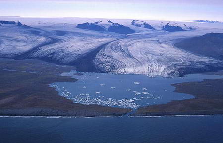 全球变暖加速冰岛冰川融化:坚冰化成蓝湖
