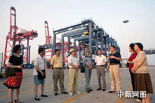 诗人们一走入连云港港口,巨大的塔吊和五彩缤纷的集装箱立刻映入眼帘。诗人们大多是第一次到港口,立刻被这里独特的景致所吸引。当了解到,连云港港口是世界综合实力百强港、全国十强港,2009年港口吞吐量将达到亿吨,集装箱突破300万标箱,大家再次惊叹,涌动起无限的诗情。