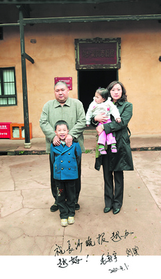 毛新宇说,这是首次提出毛泽东思想,特别具有历史意义。说完,他很是欣慰地招呼家人在展示牌前合影。