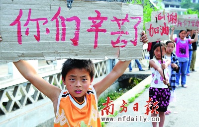 本报讯(记者/王雄伟)“谢谢东莞,谢谢东莞所有的爱心人士。”昨日傍晚,在电话的那一端,“举牌娃娃”、曾在东莞北大学园博雅外国语学校复学一学期的徐广用略显稚嫩的声音这样表达自己的谢意。徐广说,自己和其他伙伴虽然在东莞呆了短短的7个月,但是得到了东莞社会各界的“溺爱”,而且开阔了眼界,学到了很多东西,比如吹葫芦丝、跳国标舞等。