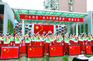 本报讯(通讯员李剑韬)昨天上午,门头沟区大峪二小举行了“我为祖国绣国旗”献旗仪式。41面由全区3万余名学生、教师一针一线精心绣制的五星红旗献给祖国。“我为祖国绣国旗”活动历时97天,3万多名学生、教师和家长积极参与了国旗的绣制。41面国旗,共计1300万针,用线总长达15万米。这根15万米长的红线,足以把北京的最高峰灵山和祖国的心脏天安门紧紧联在一起。