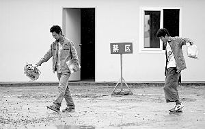 6月7日,陕西宁强一中,两名考生踩着泥泞的路走出考场。记者 杨杰 摄