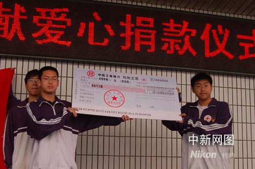 中新网5月16日电 题:北京一中学生18年攒下10万元零用钱 全捐四川灾区
