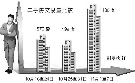 来自房地产交易管理网的数据显示,上周,北京二手房住宅成交量为1186套,比10月第四周上涨137%,比10月第三周上涨77%。