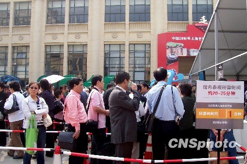 10月13日,走进世博会——中国2010年上海世博会暨世博会历史回顾展在上海展览中心展出。展厅外主办方专门设置一个白色屋顶的大棚,成为一个临时的观众场外等候区,参观者服务模拟系统和文明观展提醒标识,让参观者提前体验“如何参观上海世博”。中新社发 周东潮 摄