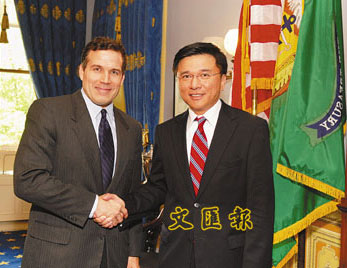 陈家强刚结束与多名美国官员的会谈,包括美国联储局主席伯南克和负责国际事务的美国财政部副部长麦考密克。陈家强表示,他和伯南克讨论了次按危机给全球造成的持续影响,但没有直接询问联储局未来会否继续减息。