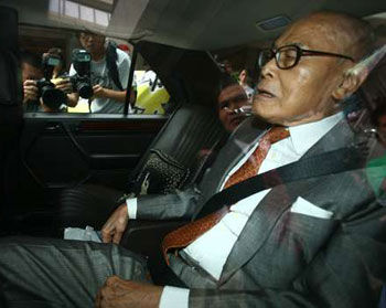 图:非执行董事李家祥(左图)与钟士元在会后乘车离去。(图片来源:大公报)