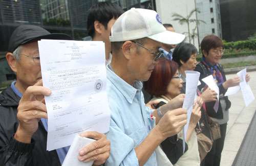 香港五名买入雷曼投资产品的市民6日入禀小额钱债审裁处,向相关银行索偿,这是美国雷曼兄弟倒闭后,香港首次有投资者循法律途径追讨赔偿。图片来源:大公报