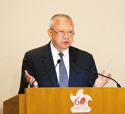 董建华在演说中指,祖国过去60年的成就中凝聚了香港人的智慧与付出、艰辛与汗水:无论是建国头30年,香港作为国家对外的唯一桥梁,还是改革开放的30年,作为国家改革开放的先锋,香港人为国家经济发展作出的贡献有目共睹,香港人士对内地公益慈善事业和文化社会建设的贡献也是令人钦佩。