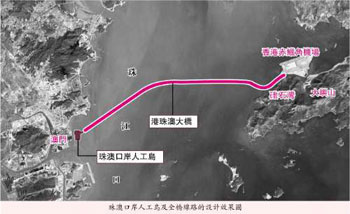 另外,据消息人士称,大桥两个口岸人工岛设计由口岸用地范围线至海堤顶外侧预留宽度为25米,包括海堤宽度、海堤和场地地基处理过渡带。根据潮位资料,确定人工岛地面标高为5米,填海后经地基处理加固后交工面标高为4.5米,将能防御珠江口300年一遇的洪潮。