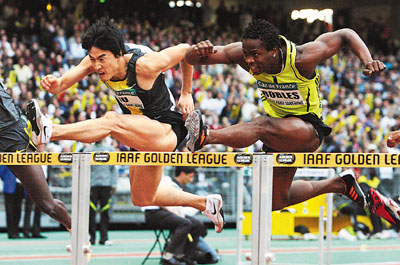 “只要他(罗伯斯)养好伤,(最大对手)肯定还是他。巴巴多斯那个……(柏林世锦赛冠军布拉斯怀特,不过刘翔叫不上来他的名字),跑13秒零几没问题,但是跑进13秒估计有难度。我还是看好罗伯斯。”这一点,刘翔师徒非常一致,孙海平教练也表示:“罗伯斯的问题不大,之前他的伤不太严重,主要是摆动腿的力度,过栏那一下,他的问题不是很大,跟刘翔没法比,养一段就好了。”