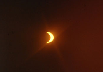 9时15分,四分之三个太阳被阴影遮盖,之后就会慢慢复原,至10时半结束。