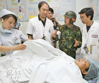 中新网5月22日电 据香港明报报道,“我吃野草、吃蚯蚓,我告诉自己要活下去,拼命的活下去!口喝了,没有水,我便喝自己的尿,喝了两三遍……不知过了多少天,刘大爷来到,他说:‘我是来救你的!’”21日再有一名在废墟中重伤待援9日9夜的女工获救,而负责救援的,正好是香港医管局急症专科医生刘楚钊和护士刘炳发。
