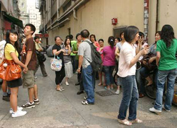五月十二日晚,香港市民在街头观看新闻,关注四川等地发生的地震消息。当天下午,香港天文台也接获多名市民的报告,表示感觉到一次震动。 中新社发 洪少葵 摄