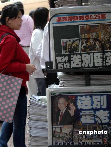 11月7日,霍英东先生的追悼会在香港殡仪馆举行,香港媒介给予充分关注。中新社发 谭达明 摄