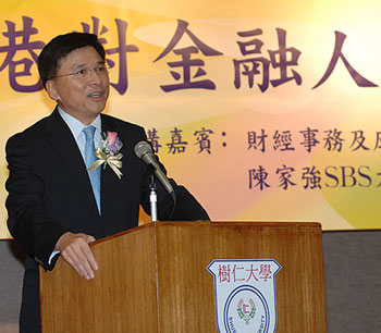 陈家强17日出席树仁大学讲座后表示,关注外国经济情况会否转坏,但目前状况不太清晰,需待美国的情况明朗化,才可清楚了解对香港的影响。他指出,香港财政司司长作出经济增长预测时,已考虑到各方面的因素,包括美国的次按问题、通胀情况、内地的宏观调控措施等。直至目前为止,没有需要更改该预测。