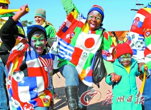 在南非“大游行”广场,当局竖起一块大屏幕,供民众免费观看世界杯赛事。人们看到,各种肤色的人聚集在那里一起兴致勃勃地观看比赛。这种打破种族和等级分歧的现象过去在南非是罕见的。