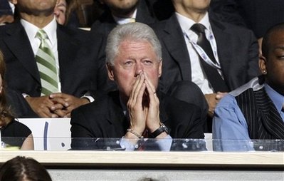 克林顿在观众席上眼泛泪光。