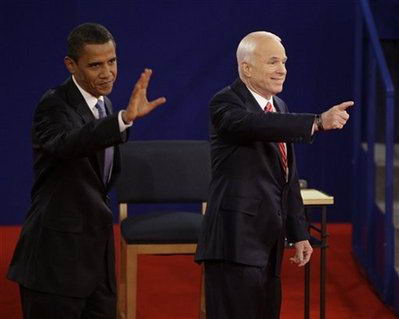 据美联社报道,美国当地时间10月7日晚上21点左右(北京时间10月8日早上9点左右),美国共和党总统候选人麦凯恩和民主党总统候选人奥巴马在田纳西州的贝尔蒙特大学开始辩论,这是两人选举议程的三场辩论中的第二场辩论。
