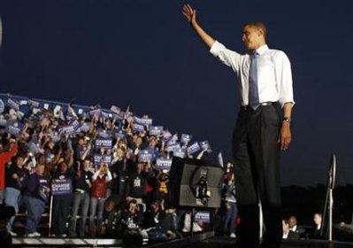 奥巴马18日参加一个竞选集会。