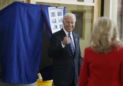 拜登夫妇和母亲在特拉华州投票