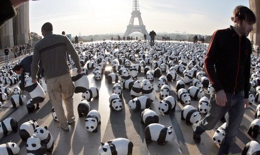 中新网10月20日电 综合报道,10月18日,在法国首都巴黎,1600只纸制熊猫被放置在广场上供人们参观。这一活动由世界自然基金会(WWF)发起,旨在呼吁人们保护为数不多的大熊猫,同时提醒人们保护赖以生存的自然环境。