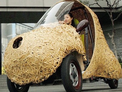 据悉,该车可乘1人,爱称“Bamgoo”源于竹子的英文“bamboo”。它是由 45根竹子加工成900张长2米、厚1厘米的薄板后,再由竹器艺人花费1个月时间编制出了车体。
