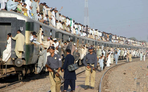 巴基斯坦木尔坦,几十万来自巴全国得逊尼派穆斯林参加当地的一个为期三天的宗教聚会后乘火车返乡。