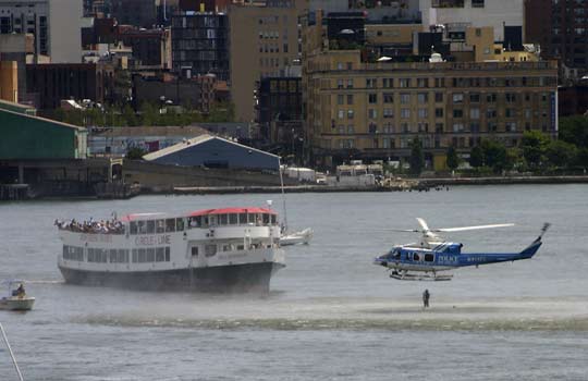 目前,纽约市和新泽新州的应急救援机构人员共同在哈德逊河中,努力营救失事飞机上的人员。