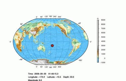 据中国地震台网测定,北京时间9月30日01时48分,萨摩亚群岛地区(南纬15.5,西经172.2) 发生8.0级地震,震源深度约33公里。