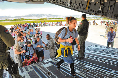中新网1月18日电 据香港《文汇报》18日报道,海地7级大地震后,美国空军接管首都太子港机场,但机场运作仍乱作一团,而且几乎变成美国人专用机场,一切以撤离美国公民为优先,连其它国家的救援飞机也不允许降落。据报一架载运野地医院设备的法国飞机要求降落,但不获许可,法国外长已正式向美国驻法国大使馆提出抗议。