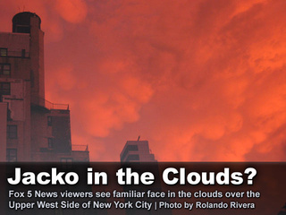 中新网6月30日电 美国纽约26日下了一场大雷雨,在下雨之前,天空出现罕见的红色云朵,许多纽约客纷纷走到户外,观看这个大自然奇景。对于云的形状,有人说像是外星人来了,更有人绘声绘影地说,在云朵中看到25日去世的流行音乐天王杰克逊。