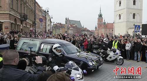 中新网4月13日电 当地时间11日下午,在俄罗斯斯摩棱斯克附近遭遇坠机遇难的波兰总统卡钦斯基的遗体回到祖国,暂时停放在总统府,供亲属瞻仰。波兰政府宣布,13日向公众开放总统府供人们前往志哀。遇难者葬礼预计在17日举行。