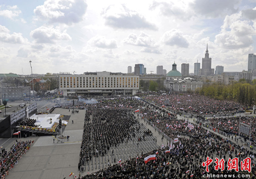 多达数十万人聚集在波兰首都华沙皮苏特斯基广场,为96名遇难者送上最后的祝福和思念之情,与他们“道别”。