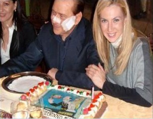 中新网1月6日电 最近因遭到攻击受伤支持率有所上升的意大利总理贝卢斯科尼虽然在家养伤,脸部还包着纱布的他也没闲着,据台湾“东森新闻网”援引英国《每日电讯报》报道,贝卢斯科尼日被媒体拍到笑容满面地为曾与他传出绯闻的美女议员庆祝生日,两人在生日派对期间不但有说有笑,还不时有亲密的肢体接触。