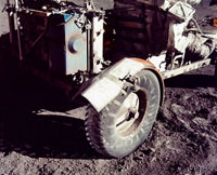 众所周知,月球表面都被厚厚的月尘覆盖,美国宇航员拍摄了很多他们在月球上留下的脚印。月球和火星异常现象研究专家约瑟夫·斯金波对这些证据一直心存质疑。从美国宇航员的照片上看,他们的月球车停靠在登陆舱很远的地方,图片上没有车辙痕迹,就好像那辆登陆车是从太空舱飞过去的。“我们当然可以假设月球表面十分坚硬,不足以让登陆车留下痕迹。可是,在登陆车旁边却有很多脚印,甚至在登陆车的下面也能看到。”